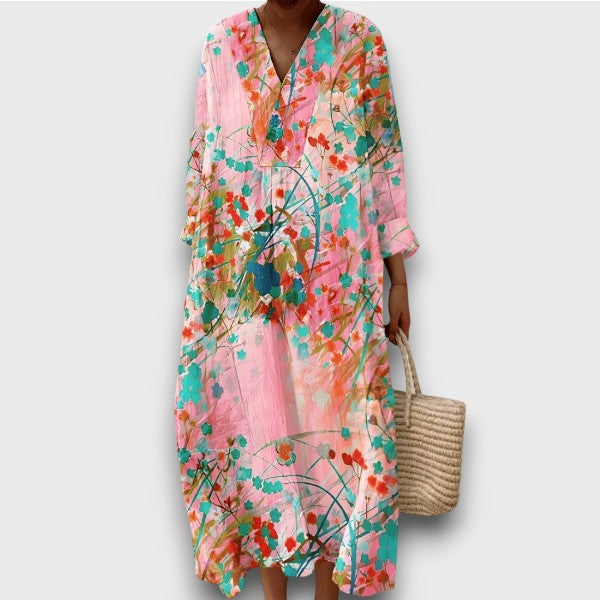 Αυτό το μίντι φόρεμα με φλοράλ σχέδιο σε ακουαρέλα είναι ένα ρούχο που φέρνει φρεσκάδα και χάρη στη ντουλάπα σας. Σχεδιασμένο με μια ρευστή και λεπτή γραμμή, είναι ιδανικό για γυναίκες που επιθυμούν ένα ρομαντικό αλλά και λειτουργικό look. Η χαλαρή γραμμή καλύπτει διακριτικά την περιοχή της κοιλιάς, προσφέροντας μια χαλαρή σιλουέτα. Το ύφασμα είναι αναπνέον και απαλό στην αφή, ιδανικό για τις ζεστές μέρες. Δεν είναι διαφανές, εφαρμόζει καλά στο σώμα και – ένα μεγάλο πλεονέκτημα – διαθέτει τσέπες διακριτικές, αλλά εξαιρετικά χρήσιμες.