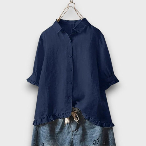 Αφήστε το Mira Εκλεπτυσμένο Chic Τοπ να μεταμορφώσει τις καθημερινές σας εμφανίσεις με την αβίαστη κομψότητά του. Είτε είστε στο γραφείο, απολαμβάνοντας μια χαλαρή έξοδο, είτε κατευθύνεστε σε μια βραδινή εκδήλωση, αυτή η μπλούζα εξασφαλίζει ότι πάντα θα φαίνεστε κομψή και προσεγμένη.