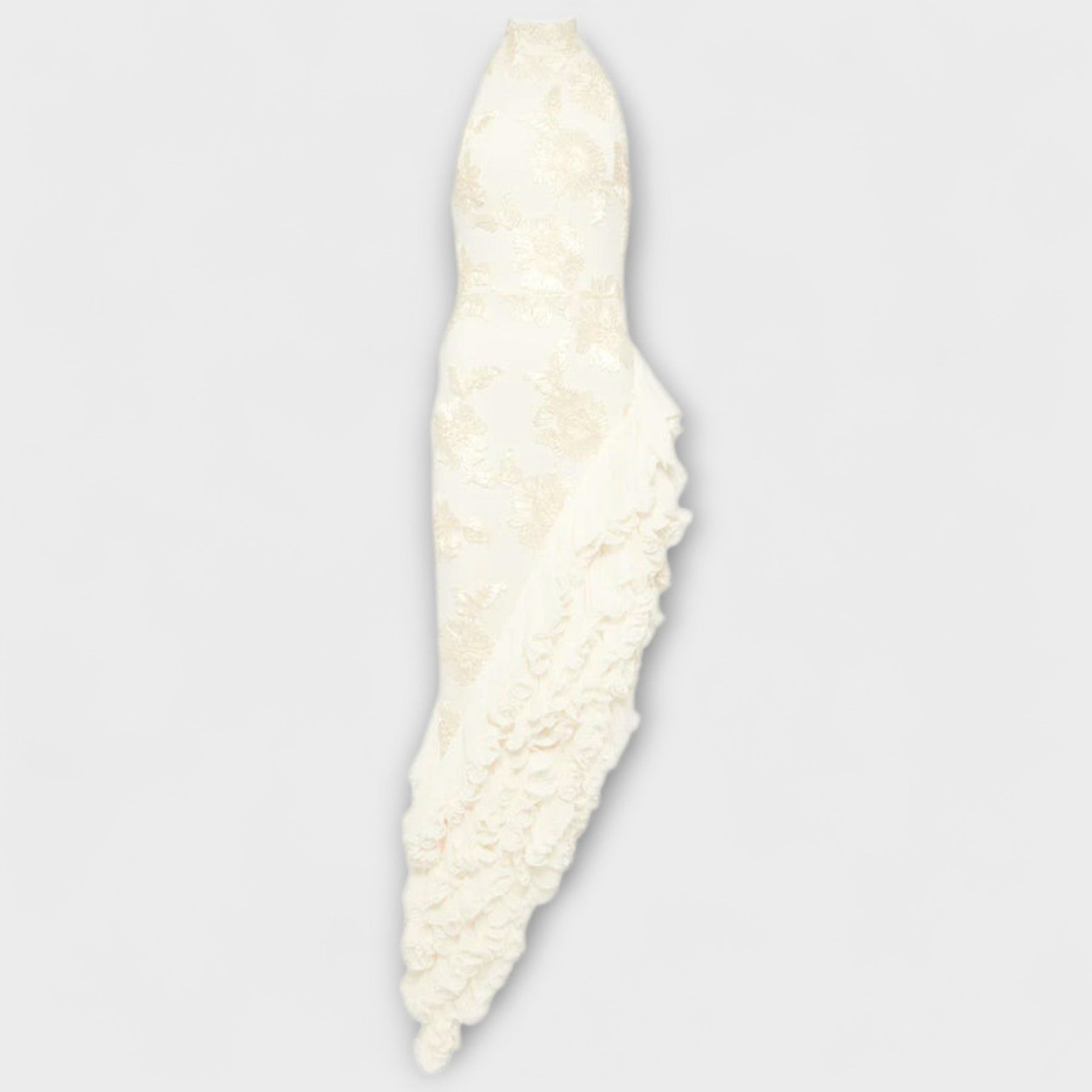 Απολαύστε την αιθέρια κομψότητα με το μαξιφόρεμά μας με λουλουδάτες εφαρμογές, μια εκπληκτική μίξη ρομαντισμού και χάρης. Αυτό το γοητευτικό κομμάτι διαθέτει λεπτομερείς 3D λουλουδάτες εφαρμογές που ανθίζουν πάνω σε μια ρέουσα, κωνική σιλουέτα.
