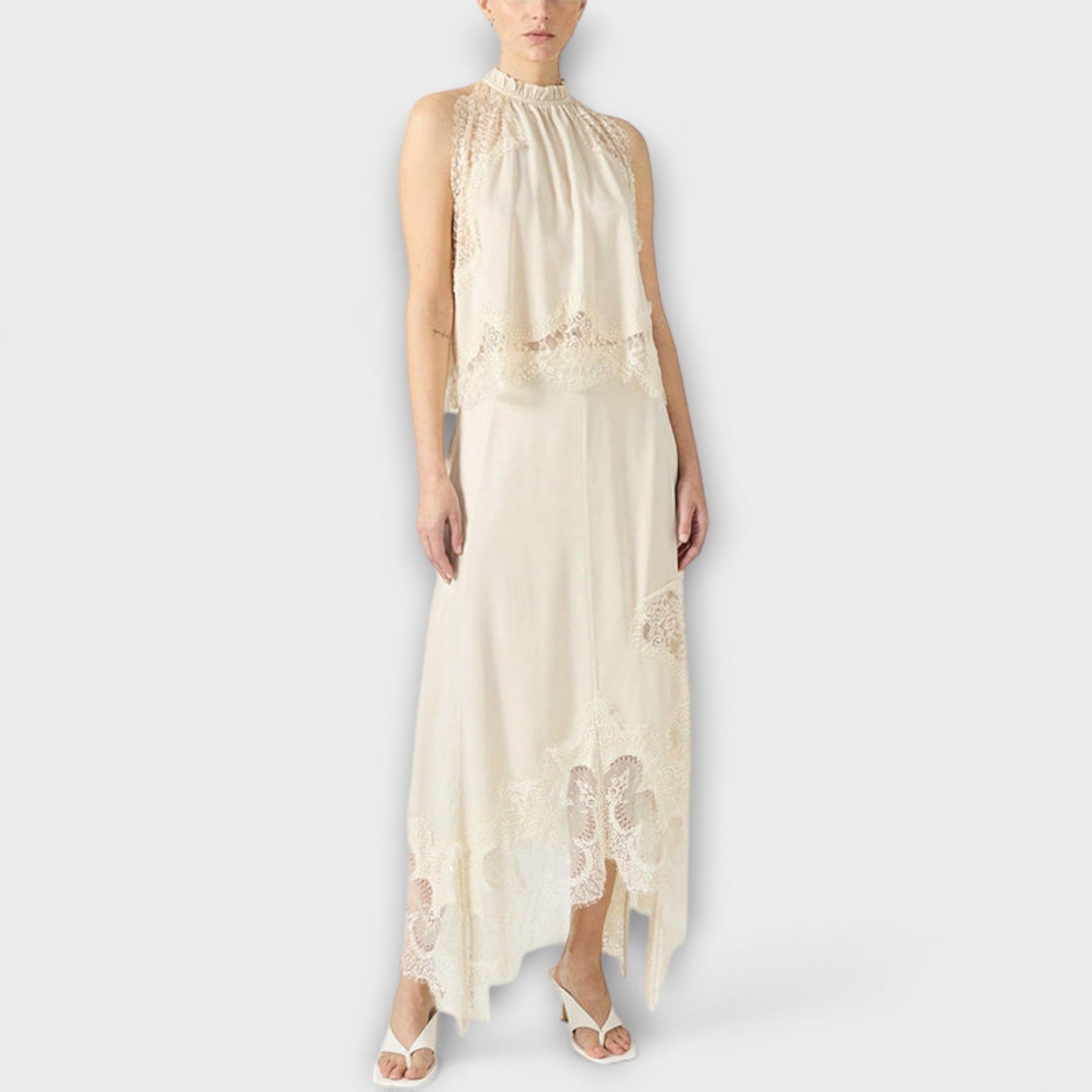 Καϊα - Σατέν μπλούζα με δαντελένια επένδυση και πλισέ ντεκολτέ σε σετ