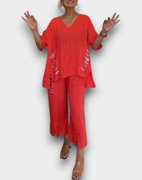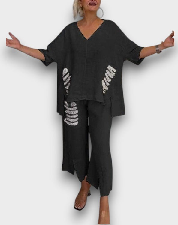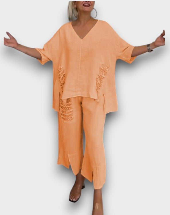 Ανακαλύψτε τη Μαρίλιν — το αβίαστο σετ δύο κομματιών που προσφέρει χαλαρή κομψότητα στην καθημερινή σας γκαρνταρόμπα.