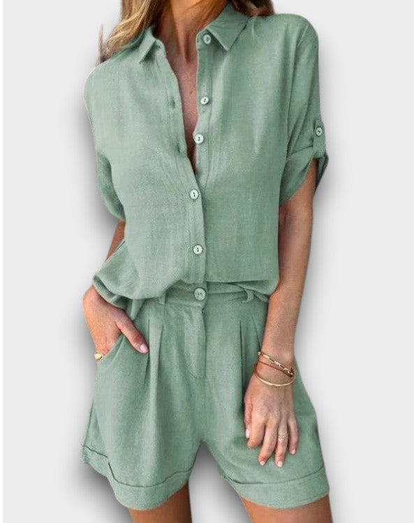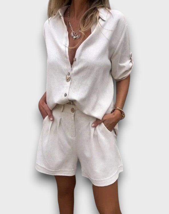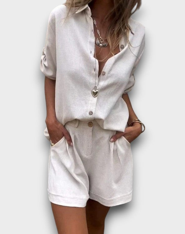 • Αναπνεύσιμη Άνεση: Φτιαγμένο από μαλακό, αέρινο λινό, αυτό το σετ επιτρέπει στον αέρα να ρέει, κρατώντας σας δροσερούς και άνετους όλη μέρα.