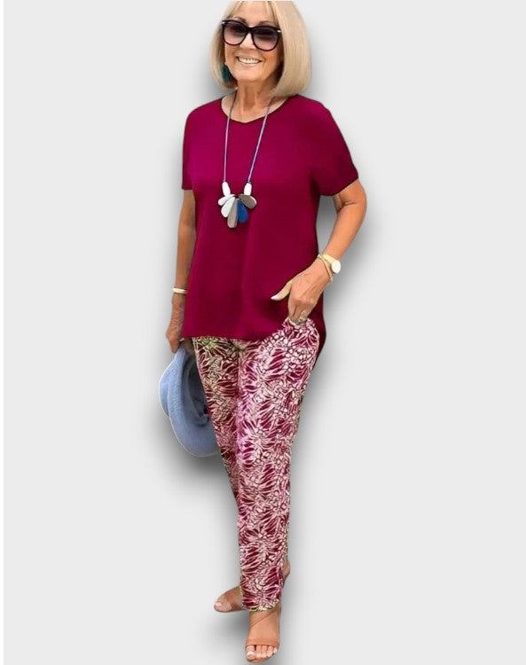 Ανακαλύψτε την υποδειγματική κομψότητα με το Σετ Μαρία — την ιδανική επιλογή για καθημερινή κομψότητα που νιώθει τόσο άνετη όσο φαίνεται. Με τις ραμμένες γραμμές του, τη δομή που κρύβει την κοιλιά και το ύφασμα που δεν τσαλακώνει, αυτό το σετ δύο κομματιών συνδυάζει άψογα την κομψότητα και την άνεση.