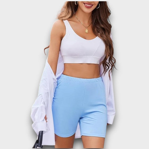 • Ελαστικά σορτς ποδηλάτου: Με ψηλή μέση, αγκαλιάζουν το σώμα σας χωρίς να πιέζουν, ιδανικά για κάθε δραστηριότητα.