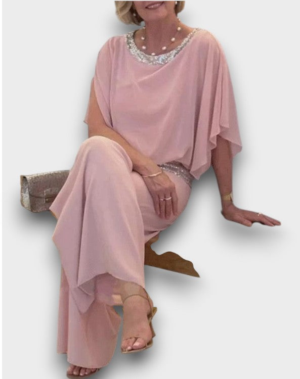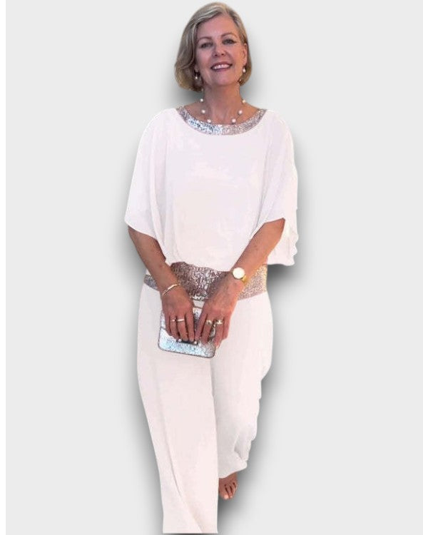 Εισέλθετε στο προσκήνιο με το Πολυξένη | Πολυτελές Σετ Παλαιών, ένα κομψό δίδυμο που ακτινοβολεί φινέτσα και διαχρονική γοητεία. Σχεδιασμένο για τη σύγχρονη γυναίκα που αγαπά να ξεχωρίζει — είτε σε μια βραδιά στην ταράτσα, σε έναν γάμο το βράδυ, είτε σε ένα επίσημο δείπνο — αυτό το σετ συνδυάζει χαλαρή χάρη με προσεγμένες λεπτομέρειες.