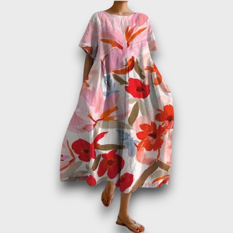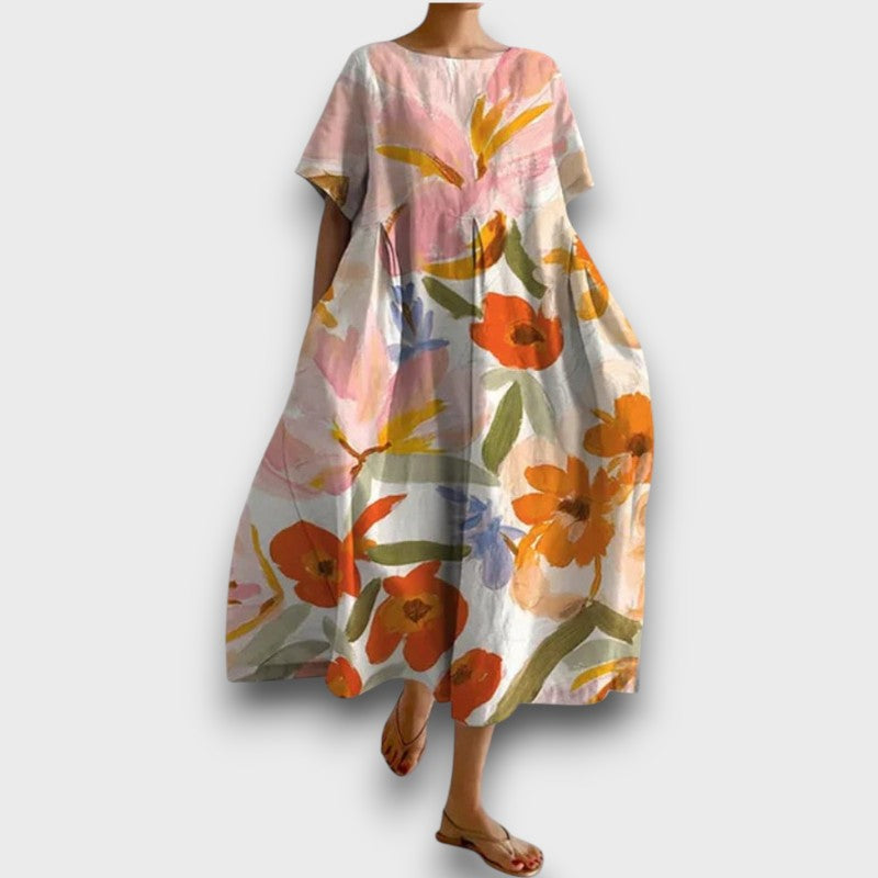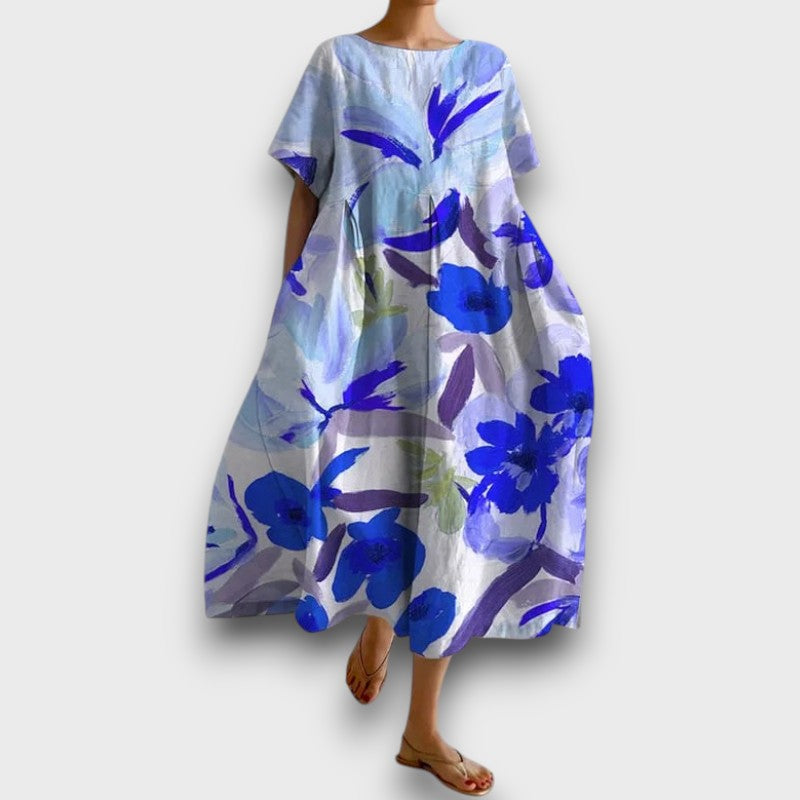 Κομψότητα χωρίς κόπο για κάθε περίσταση. Αυτό το ελαφρύ και κομψό φόρεμα συνδυάζει άνεση με διαχρονική γοητεία. Η χαλαρή εφαρμογή και οι λουλουδάτοι λεπτομέρειες δημιουργούν μια εκλεπτυσμένη αλλά χωρίς κόπο εμφάνιση, ιδανική για οποιαδήποτε ανεπίσημη περίσταση. Σχεδιασμένο για ελευθερία κινήσεων και άνεση, είναι απαραίτητο για όσους εκτιμούν το στυλ και την πρακτικότητα.