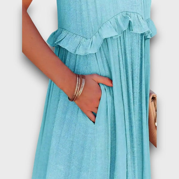 Θέλετε να φορέσετε ένα ανάλαφρο καλοκαιρινό φόρεμα, αλλά συχνά αισθάνεστε ανασφαλής για την κοιλιά σας σε στενά σχέδια ή διαφανή υφάσματα; Το φόρεμα Μαγδαληνή είναι για γυναίκες που θέλουν να λάμπουν χωρίς να υποβαθμίζουν τον εαυτό τους — κομψό, θηλυκό και άνετο.