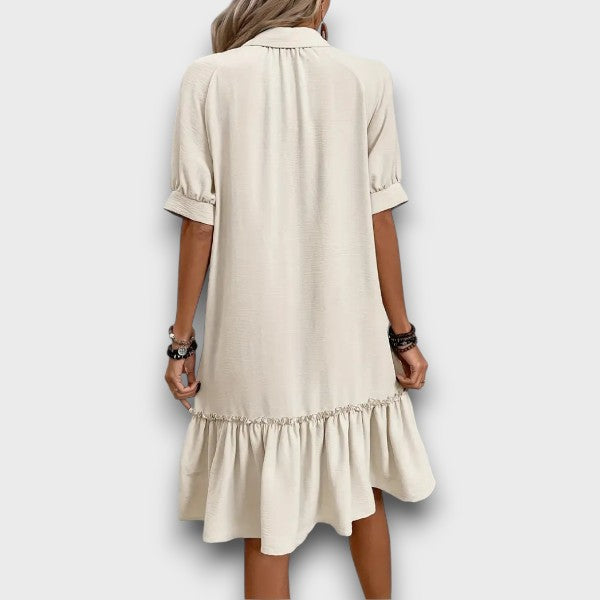•Μισομακριά μανίκια με ελαφριά φούστα και γιακά για κομψή αλλά άνετη εμφάνιση στην καθημερινότητά σας.