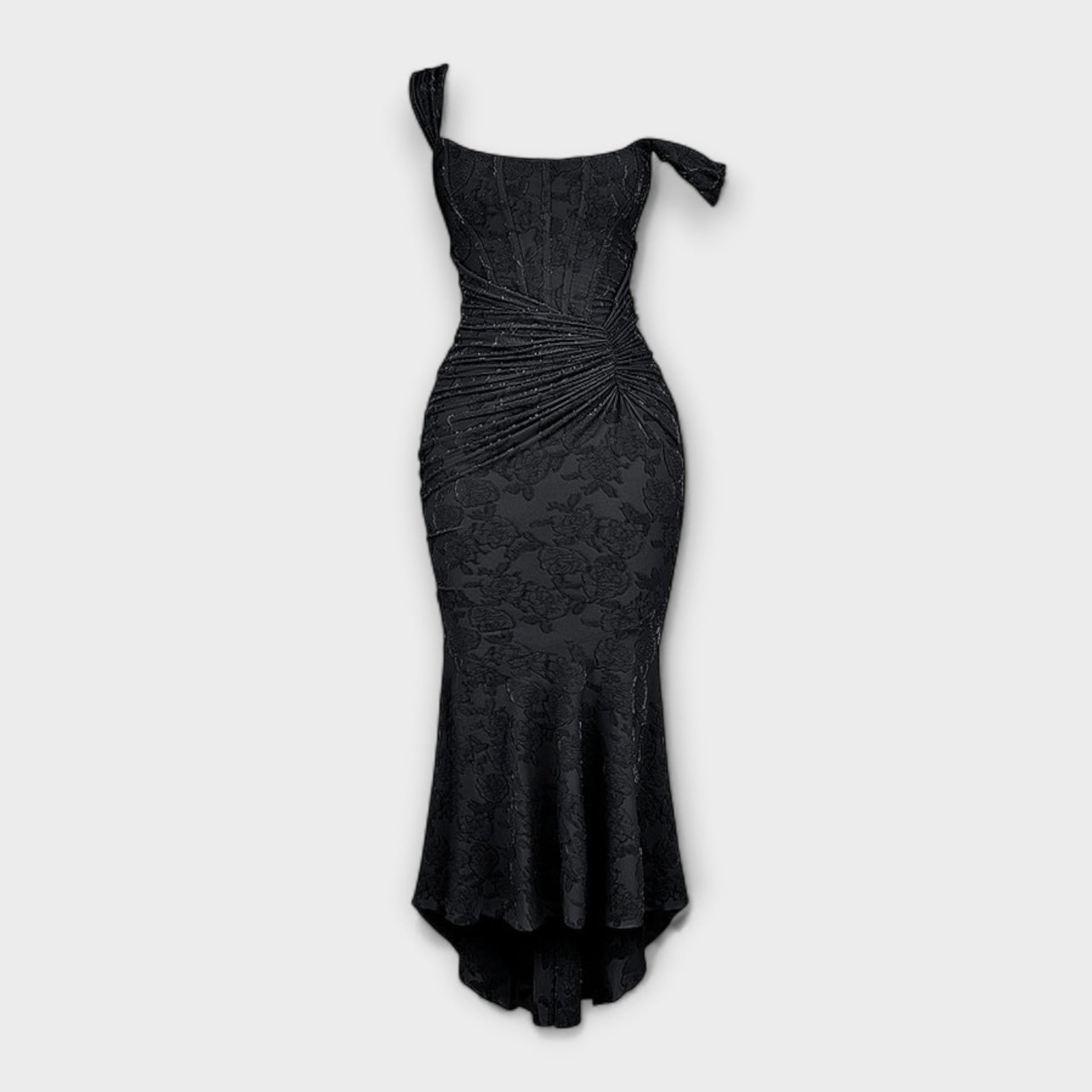 Με το σχέδιο κορσέ, απολαμβάνεις μια τέλεια εφαρμογή, ενώ οι μαγικοί πτυχώσεις στη μέση προσθέτουν μια πινελιά κομψότητας. Ιδανικό για κοκτέιλ, βραδινές εξόδους ή κάθε γιορτή, αυτό το φόρεμα έχει σχεδιαστεί για να σε ξεχωρίζει και να κάνεις μια αξέχαστη εμφάνιση.