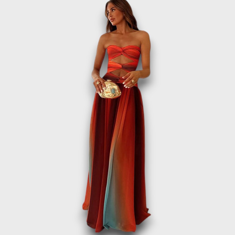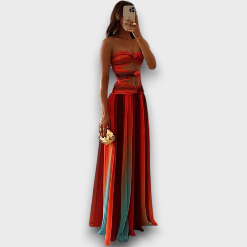 Αζίζα - Φόρεμα Μακρύ Με Κενά και Tie-Dye Γρανάζι