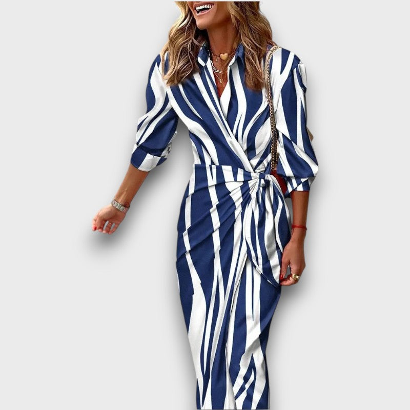 Φορέστε την Κλαρίσα | Ριγέ Μίντι Φόρεμα Καρφίτσα και απολαύστε μια εμφάνιση που είναι τόσο χαλαρή και όμορφη όσο εσείς. Γιατί να μην κάνετε δώρο στον εαυτό σας ένα φόρεμα που κάνει κάθε μέρα να νιώθει ξεχωριστή;