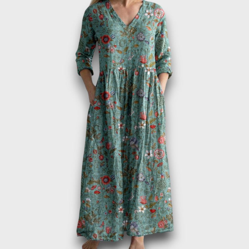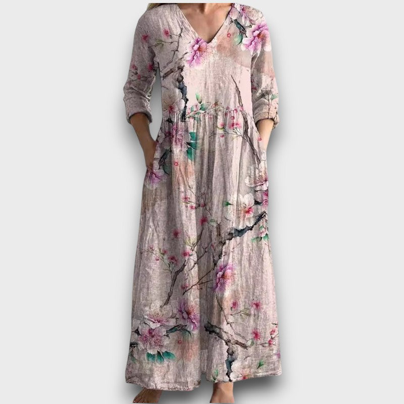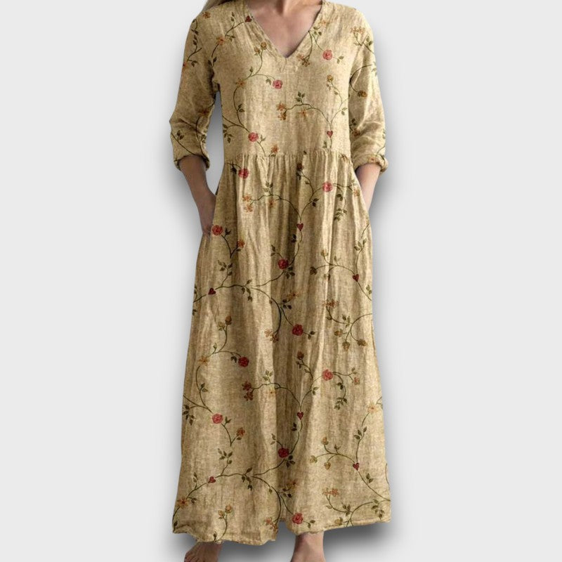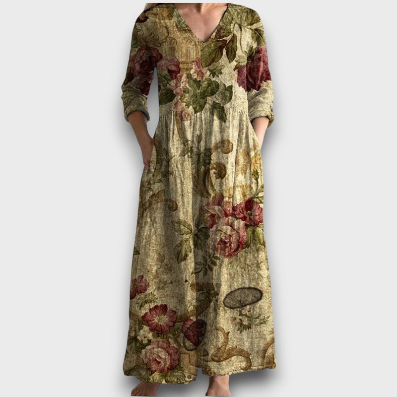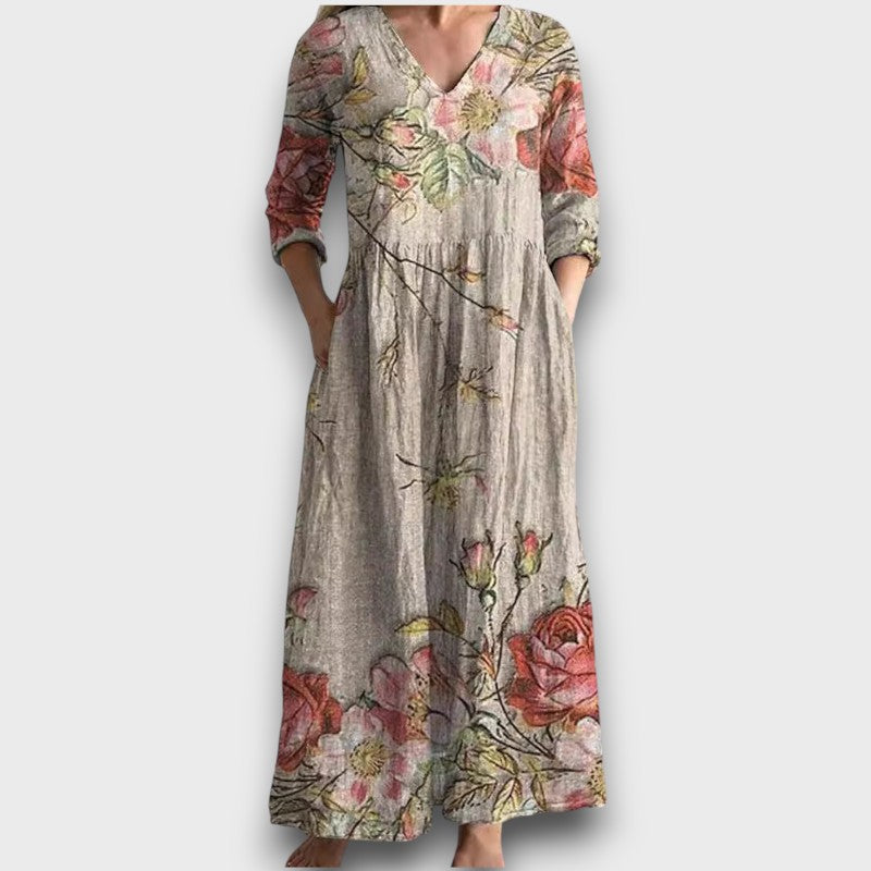 Ελεφαντόδοντο - Λουλουδάτη Χαριτωμένη Μάξι Φόρεμα