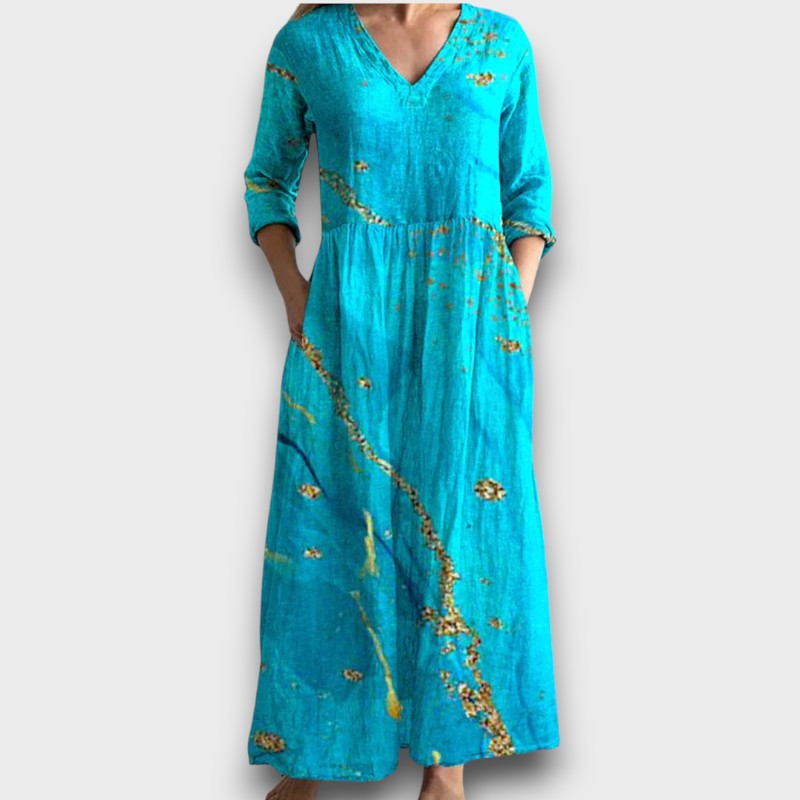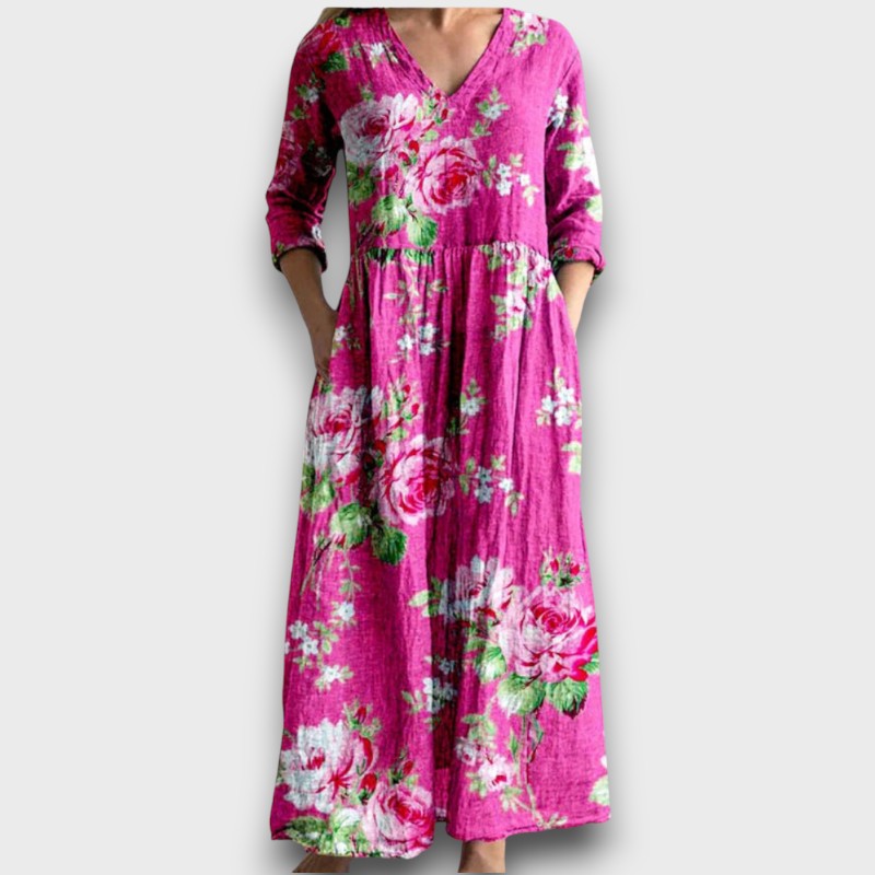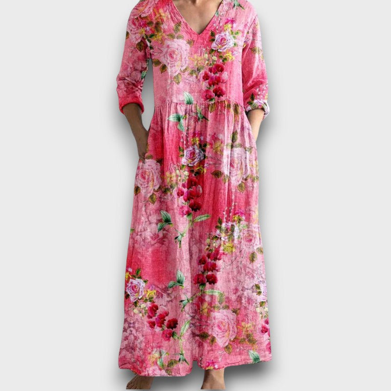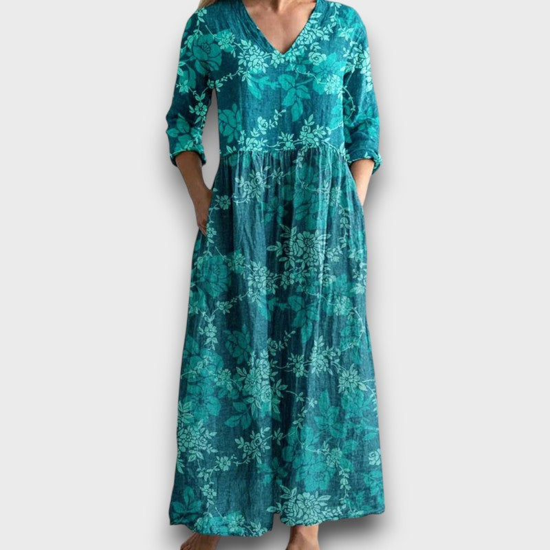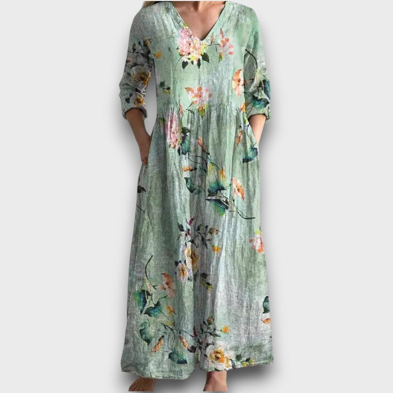 Ελεφαντόδοντο - Λουλουδάτη Χαριτωμένη Μάξι Φόρεμα