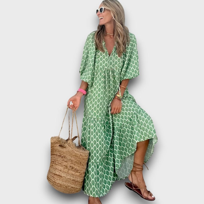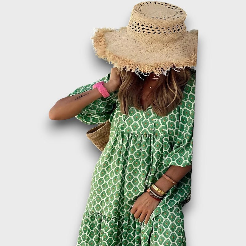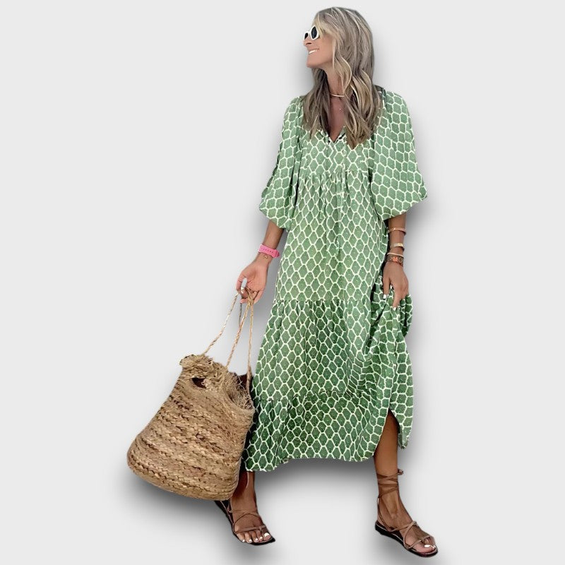 Εδώ στο Μπουτίκιου Μαρία Αθήνα, λατρεύουμε τα άνετα κομμάτια που σας κάνουν να νιώθετε όμορφη τη στιγμή που τα φοράτε—και το φόρεμα Κασσάνδρα - Γυναικείο Γεωμετρικό Σχέδιο Υψηλό-Χαμηλό είναι μία από αυτές τις ξεχωριστές ανακαλύψεις. Είναι ελαφρύ, όμορφο, και φτιαγμένο για μέρες γεμάτες ήλιο, γέλιο και ίσως λίγο αεράκι στα μαλλιά σας.