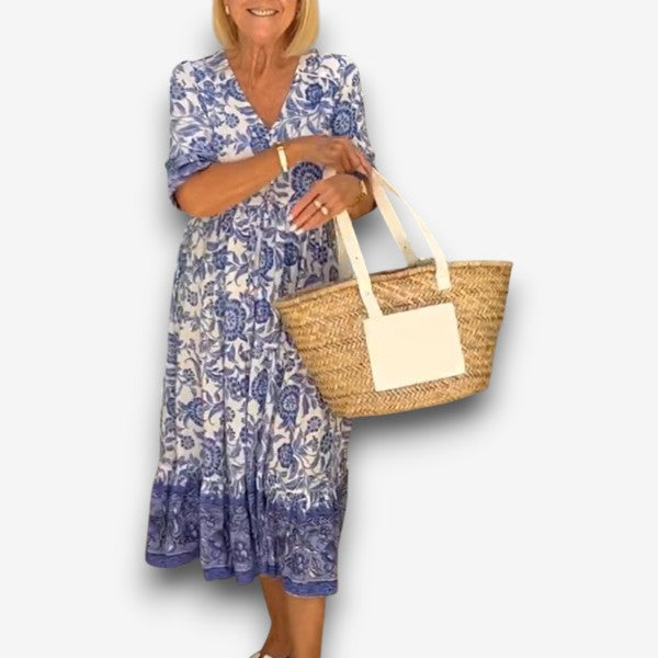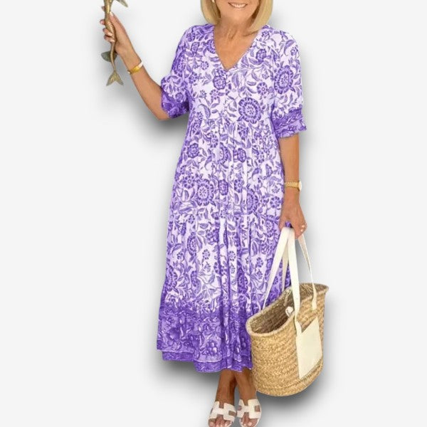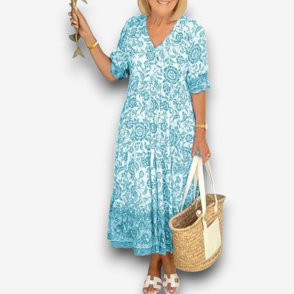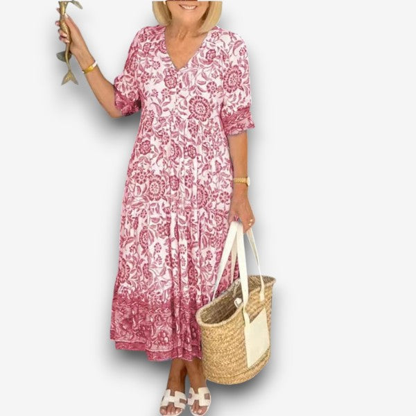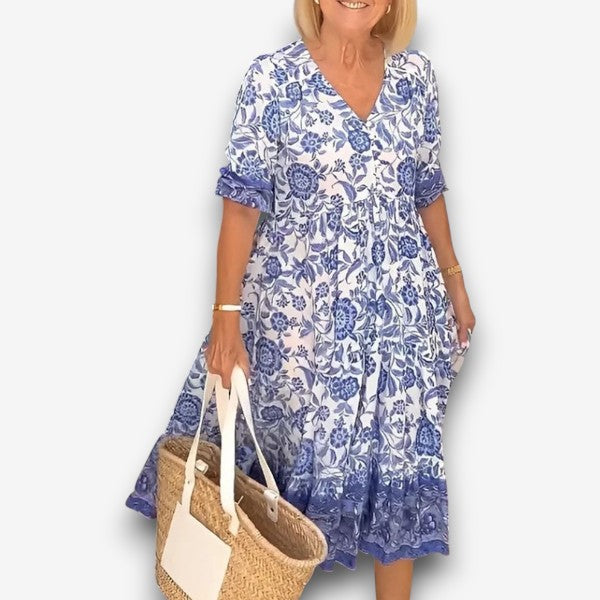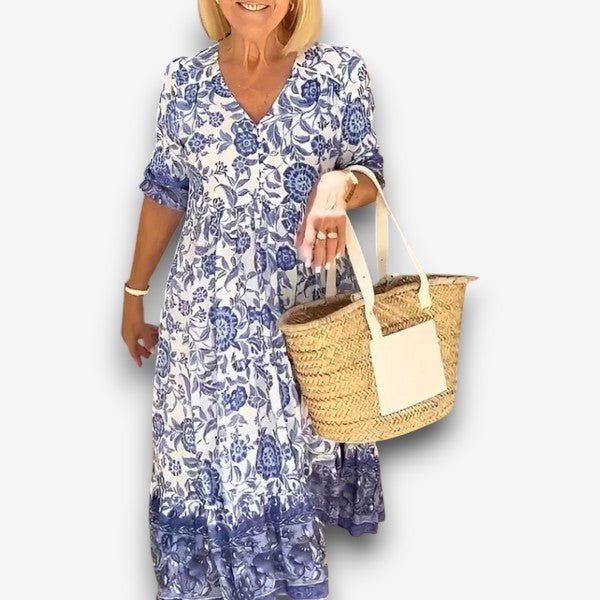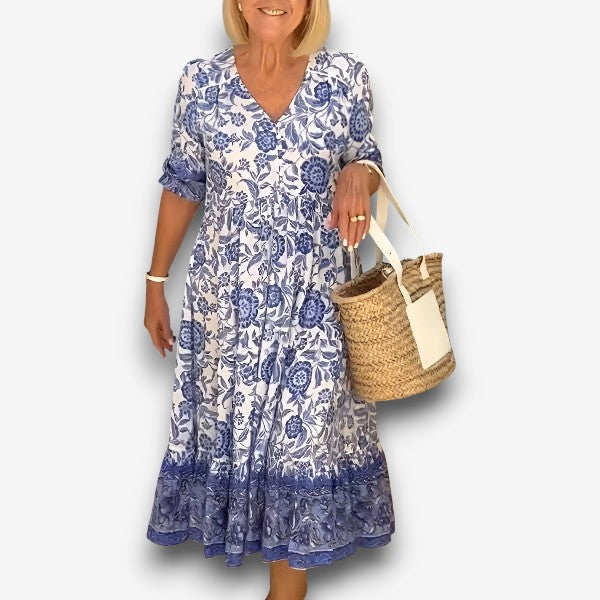 Λούνα - Κομψό φόρεμα με λαιμόκοψη V και λουλούδια