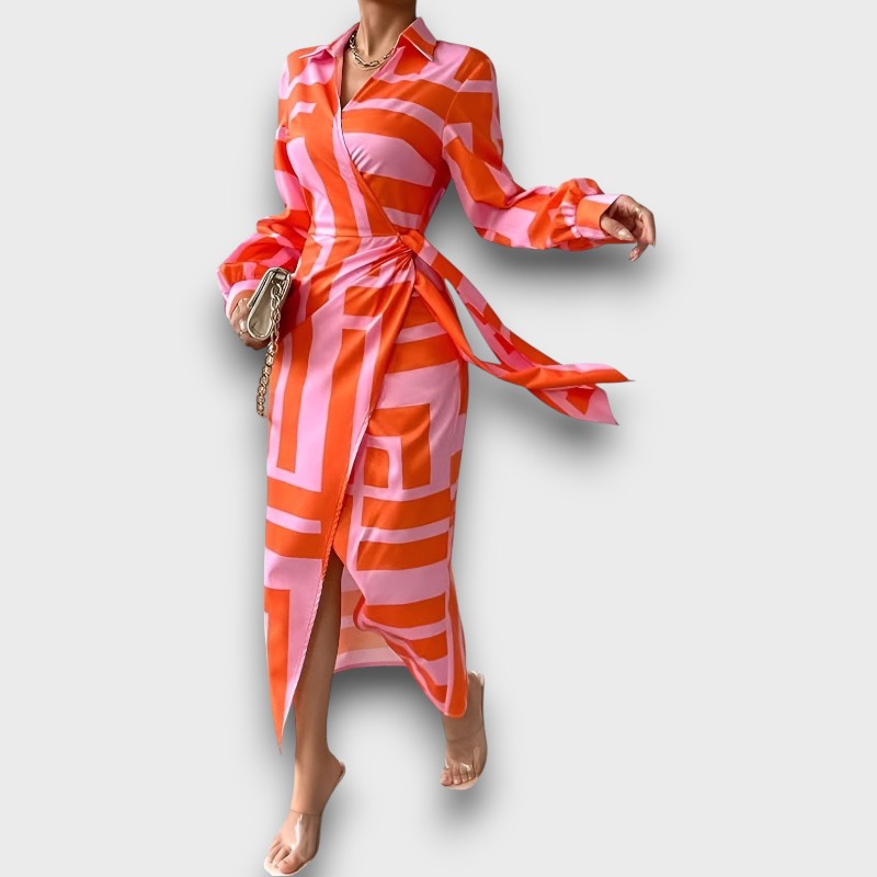 Ολίβια – Εκτυπωμένο Φόρεμα με Σφιχτή Μέση
