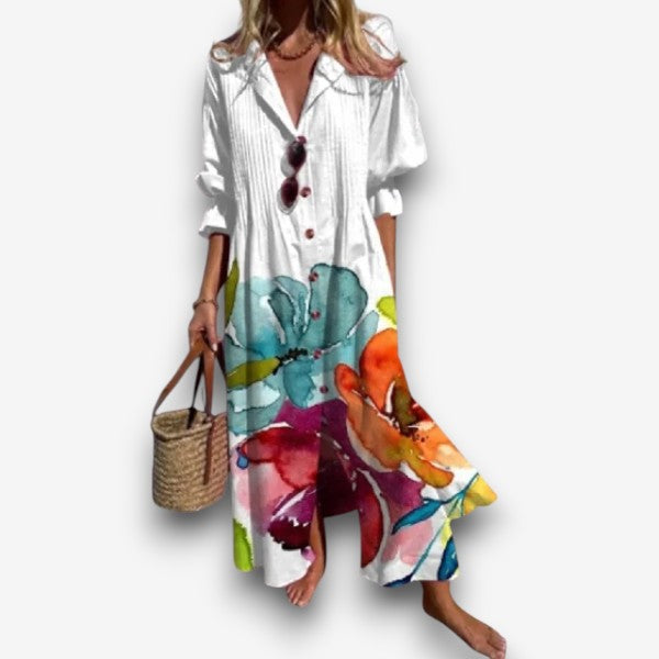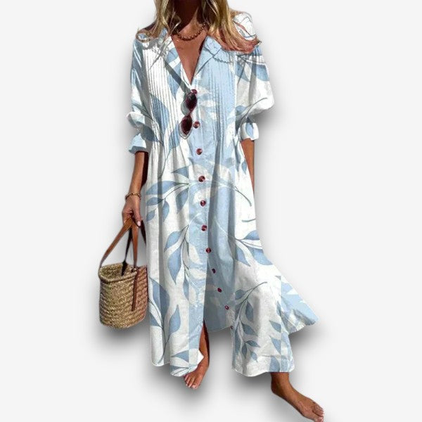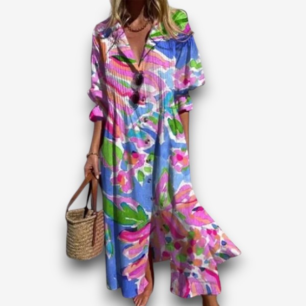 • Χαλαρή Εφαρμογή Μάξι: Σχεδιασμένο να κολακεύει κάθε σχήμα με μια ρέουσα, άνετη σιλουέτα.