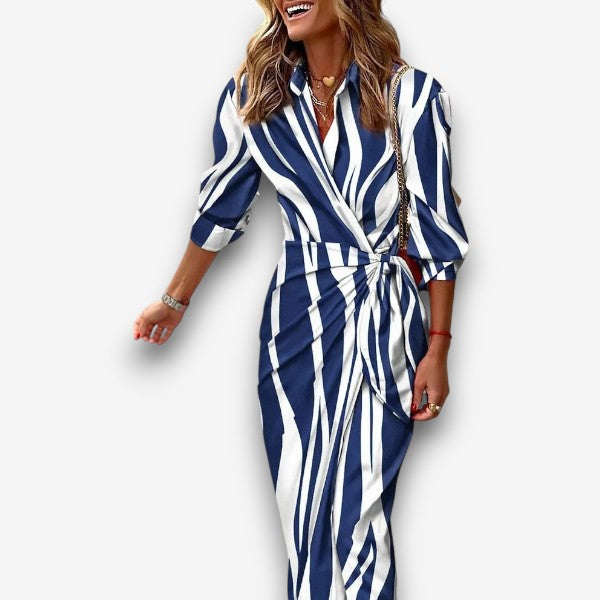Φορέστε το Κλαρίσα | Ριγέ Μίντι Φόρεμα και απολαύστε μια εμφάνιση που είναι τόσο άνετη και όμορφη όσο εσείς. Γιατί να μην κάνετε δώρο στον εαυτό σας ένα φόρεμα που κάνει κάθε μέρα να φαίνεται ξεχωριστή;