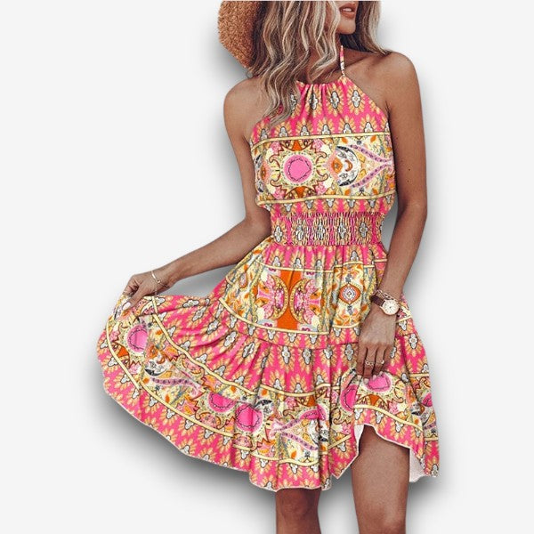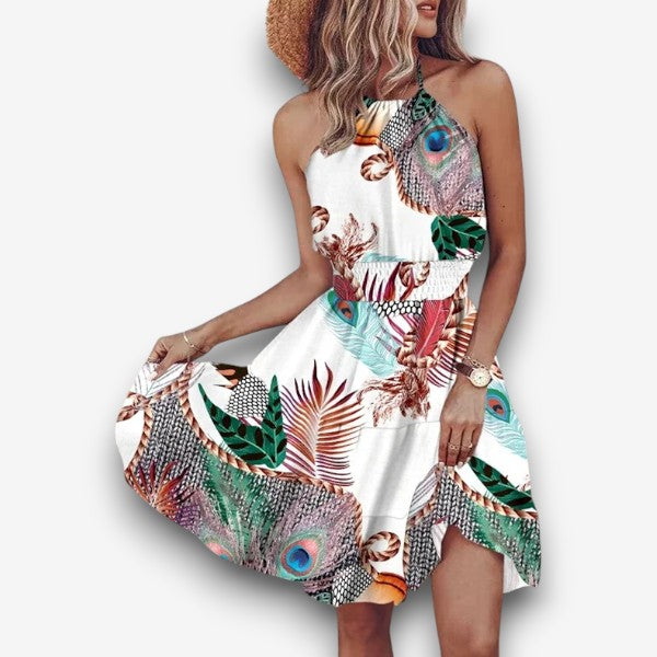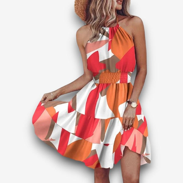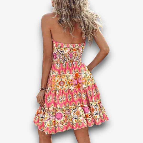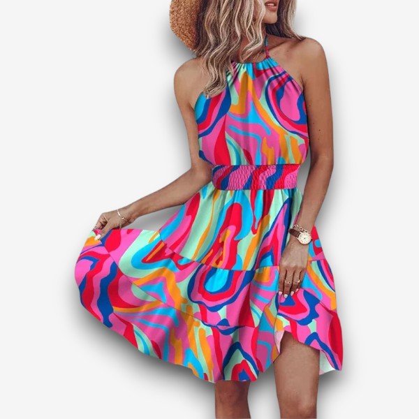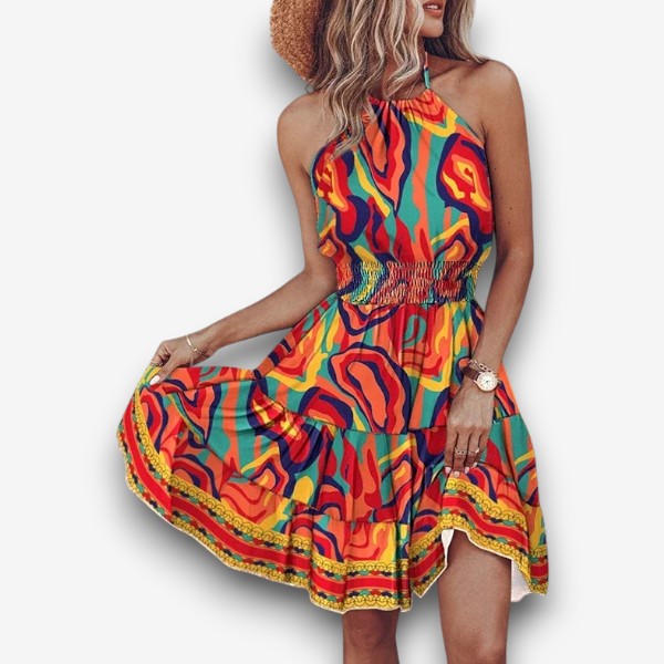 Λόξλεϊ - Μίνι Φόρεμα Χωρίς Πλάτη με Ακανόνιστο Σχέδιο