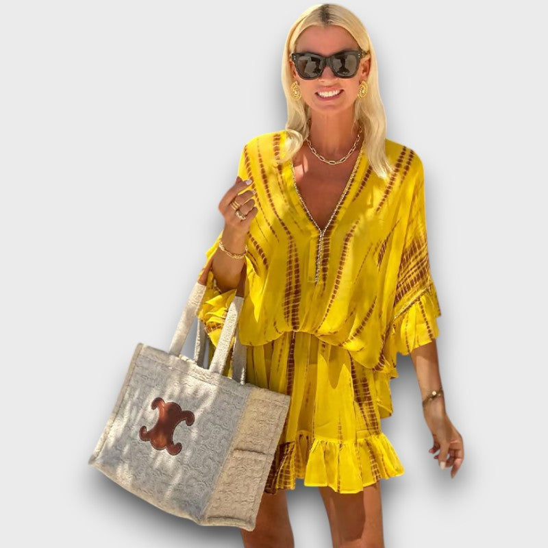 Στο Μπουτίκιου Μαρία Αθήνα, πιστεύουμε ότι κάθε γυναίκα αξίζει να αισθάνεται αυτοπεποίθηση, άνετη και λίγο μαγική—όποια μέρα κι αν είναι. Γι' αυτό ακριβώς λατρεύουμε το Ανταλίν - Κομψό Μίνι Φόρεμα με V-Λαιμό και Ψηλή Μέση. Με την ονειρεμένη μποχο γοητεία του, την κολακευτική ψηλή μέση και το μαλακό ελαστικό ύφασμα, αυτό το φόρεμα είναι φτιαγμένο για ηλιόλουστες μέρες, ζεστές γέλια και εκείνες τις στιγμές που μας κάνουν να νιώθουμε καλά και να δημιουργούμε αναμνήσεις.