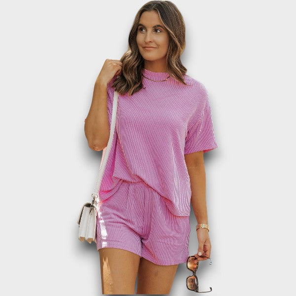Βήμα στην υποτονική κομψότητα με το σετ Βασίλισσα – όπου η άνεση συναντά το στυλ.Σχεδιασμένο για τη σύγχρονη γυναίκα, αυτό το ριγέ πλεκτό σύνολο αναβαθμίζει εύκολα την καθημερινή σας γκαρνταρόμπα.Είτε χαλαρώνετε με πολυτέλεια είτε βγαίνετε για έναν καφέ, το σετ Βασίλισσα προσφέρει μια καλαίσθητη, προσεγμένη εμφάνιση σε δευτερόλεπτα.