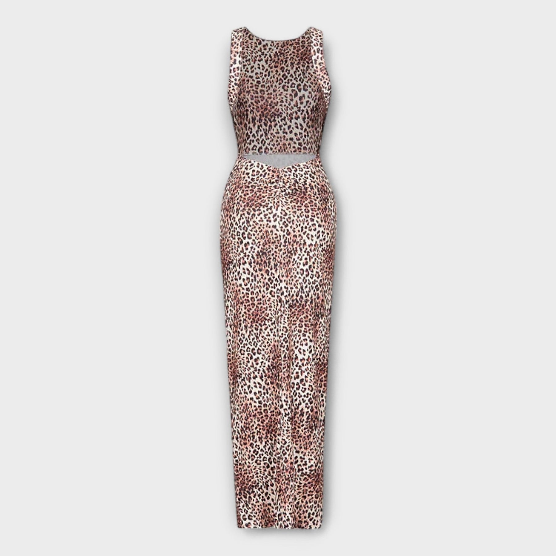 Della - Μαξιφόρεμα με λεοπάρ σχέδιο και ανοιχτή πλάτη