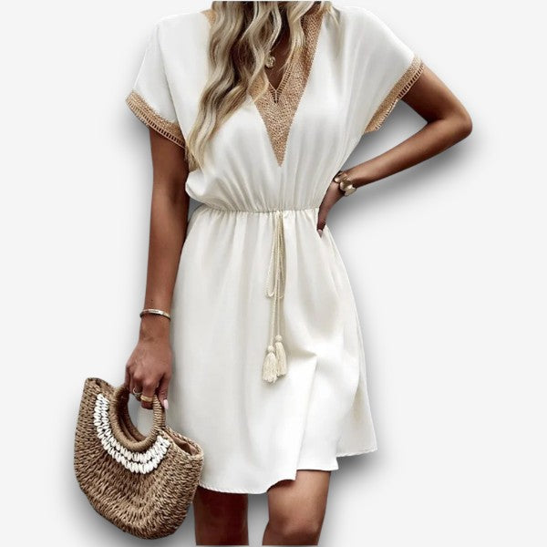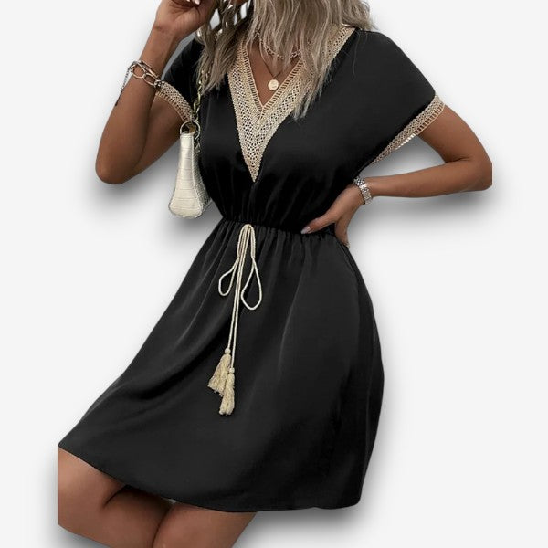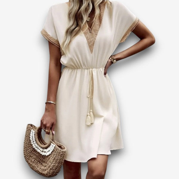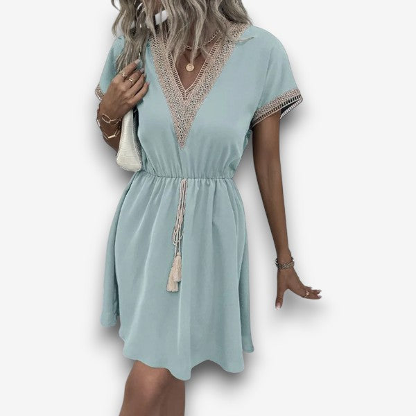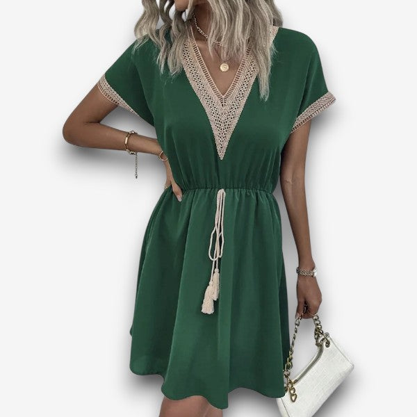 Τζοζεφίν - Κομψό φόρεμα σε στυλ μποέμ με V λαιμόκοψη και κολακευτική ζώνη
