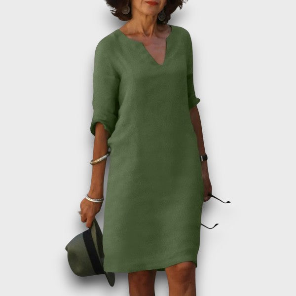 Το Λυδία είναι το φόρεμα που αναδεικνύει τη φυσική κομψότητα κάθε γυναίκας — χωρίς υπερβολές, χωρίς φανφάρες. Με καθαρή γραμμή, V ντεκολτέ και ήσυχη αυτοπεποίθηση, είναι η επιλογή που σε κάνει να ξεχωρίζεις με τον πιο διακριτικό τρόπο.